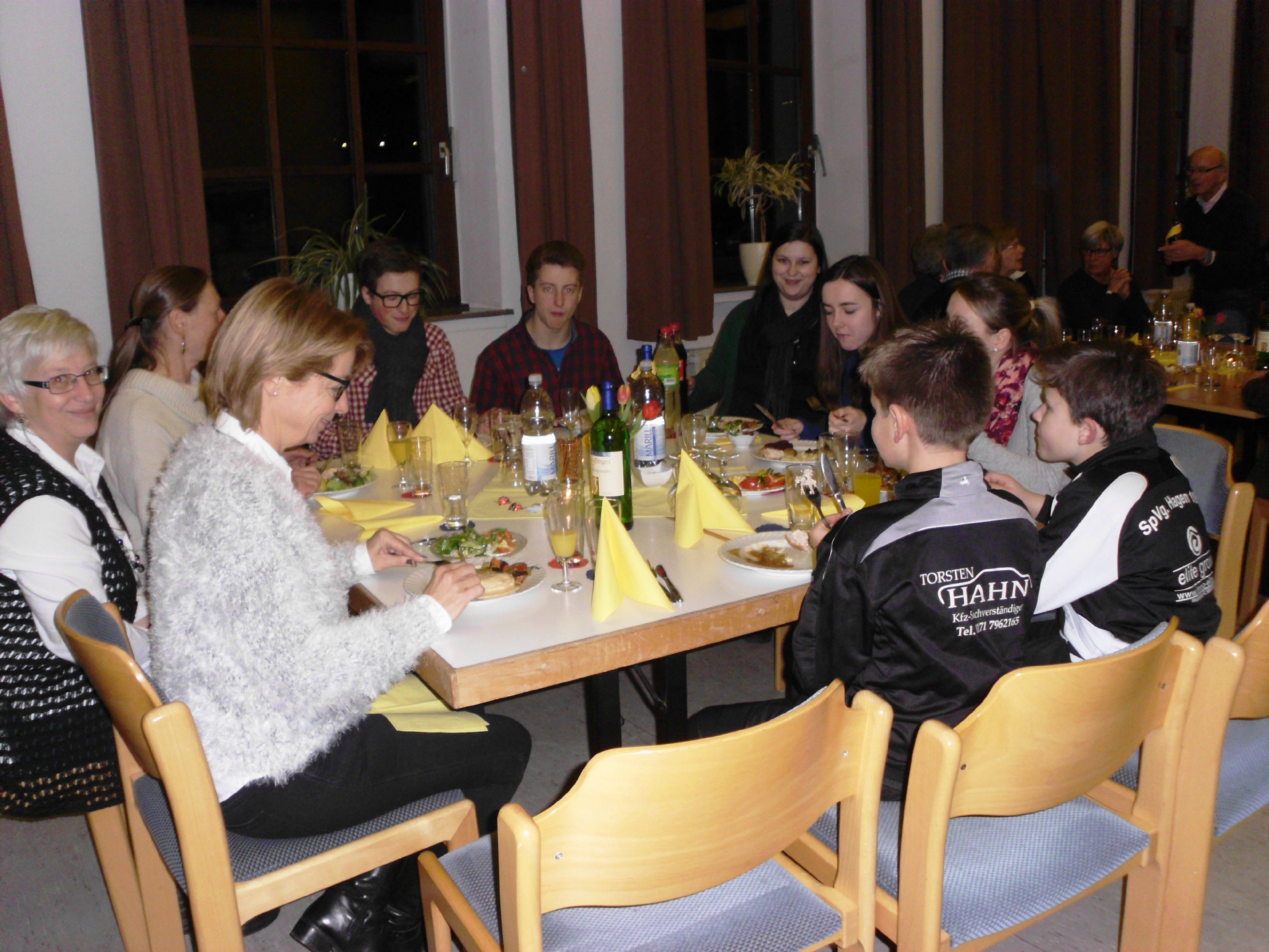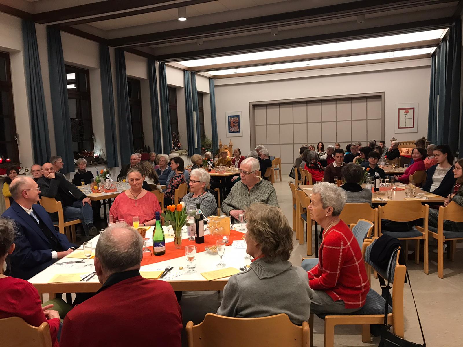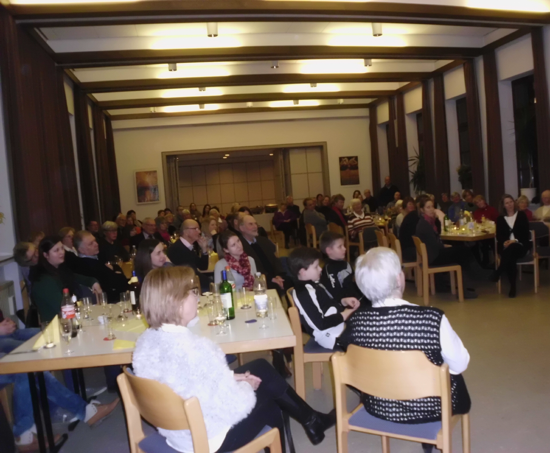 Gelungen oder nicht gelungen, das ist hier die Frage? Zumindest gelungen für alle, die da waren. Klaus Böhme, Vorsitzender des Presbyteriums, und Pfarrer Dr. Weiling hießen Mitarbeiter und Ehrenamtliche herzlich willkommen, dankten für deren Einsatz und ließen ein wenig 2019 Revue passieren mit Hoffnung auf das Jahr 2020. Sven Bergmann bot am Klavier einen hervorragende Rahmen und man genoss den Abend mit Essen, Getränken und guten Gesprächen. Nachfolgendes Bild ist von der Feier am 7. Januar 2020