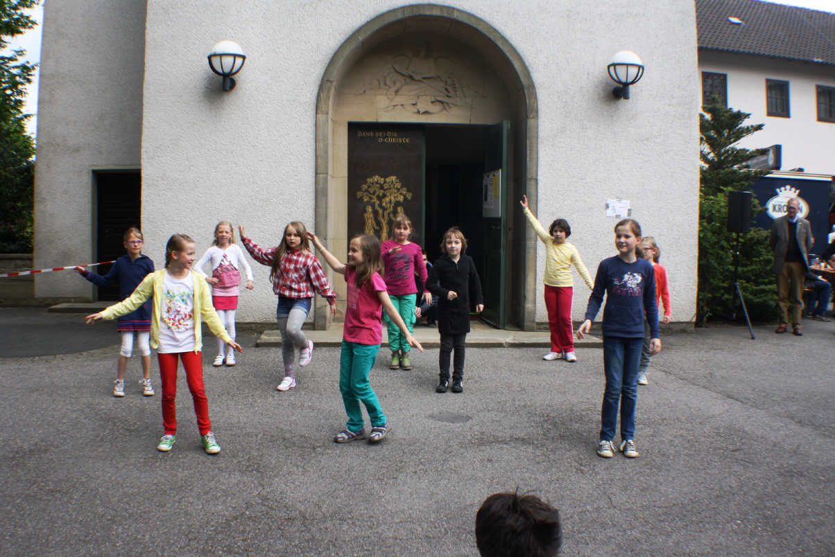 Buntes Treiben herrschte dann am Samstag auf dem Kirchplatz. Eine Tanzdarbietung der Kindergruppe „Dance for Kids“ unter der Leitung von Frau Zobeidig erfreute bei Sonnenschein die Gäste und das Blasorchester „Die Tippelbrüder“
